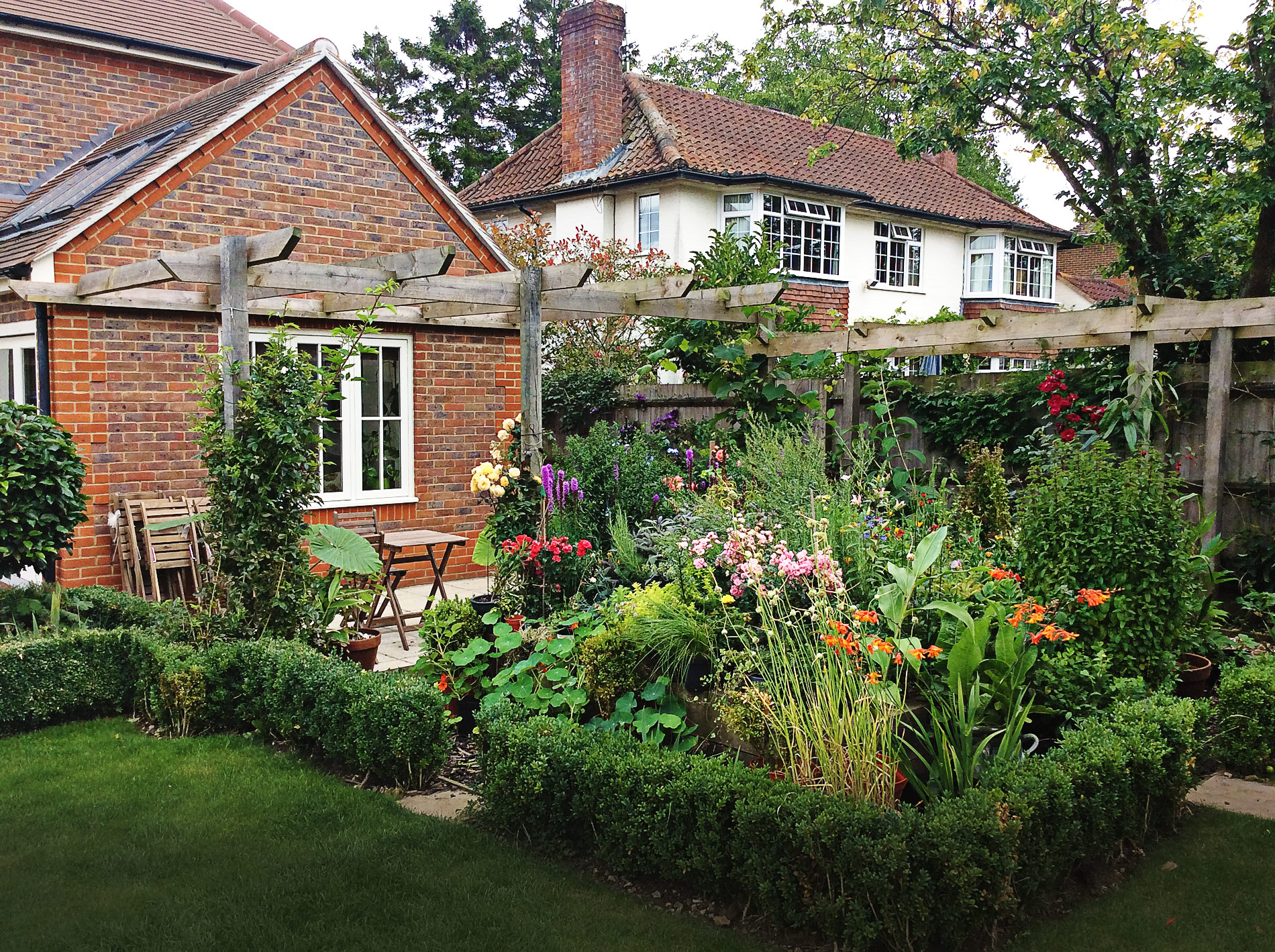 Everything you can see in this picture was assembled in about two weeks - we even repaired some of the fencing and put up the trellis at the back.