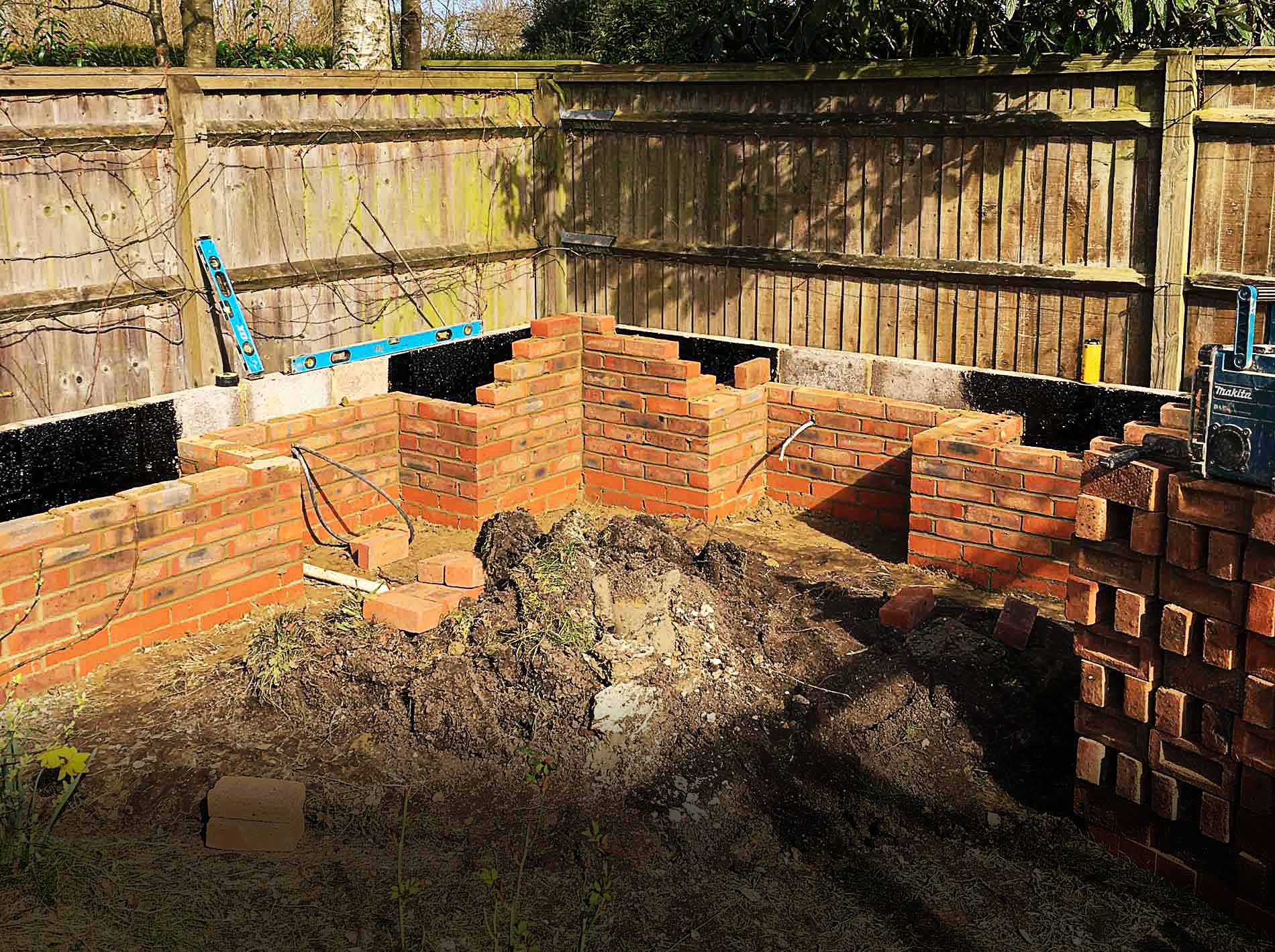 While we were hooking up the electric pump for the water feature, we also added power points behind the seats.
